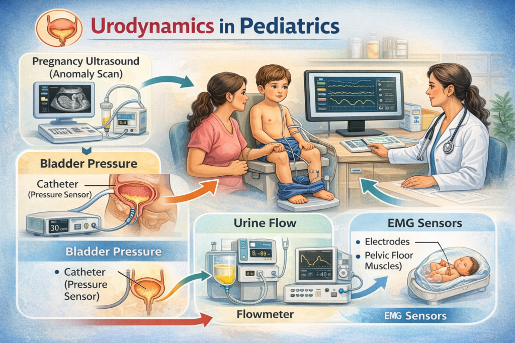 Urodynamics is a specialized diagnostic test used to assess how well the bladder and urethra store and release urine. It helps identify functional problems of the lower urinary tract, including bladder dysfunction, neurogenic bladder, or obstruction. Since a child’s urinary system is still developing, accurate assessment requires child-friendly techniques, gentle handling, and experienced pediatric specialists to ensure comfort and reliable results.